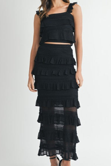 Candra Tiered Ruffled Top and Skirt Set