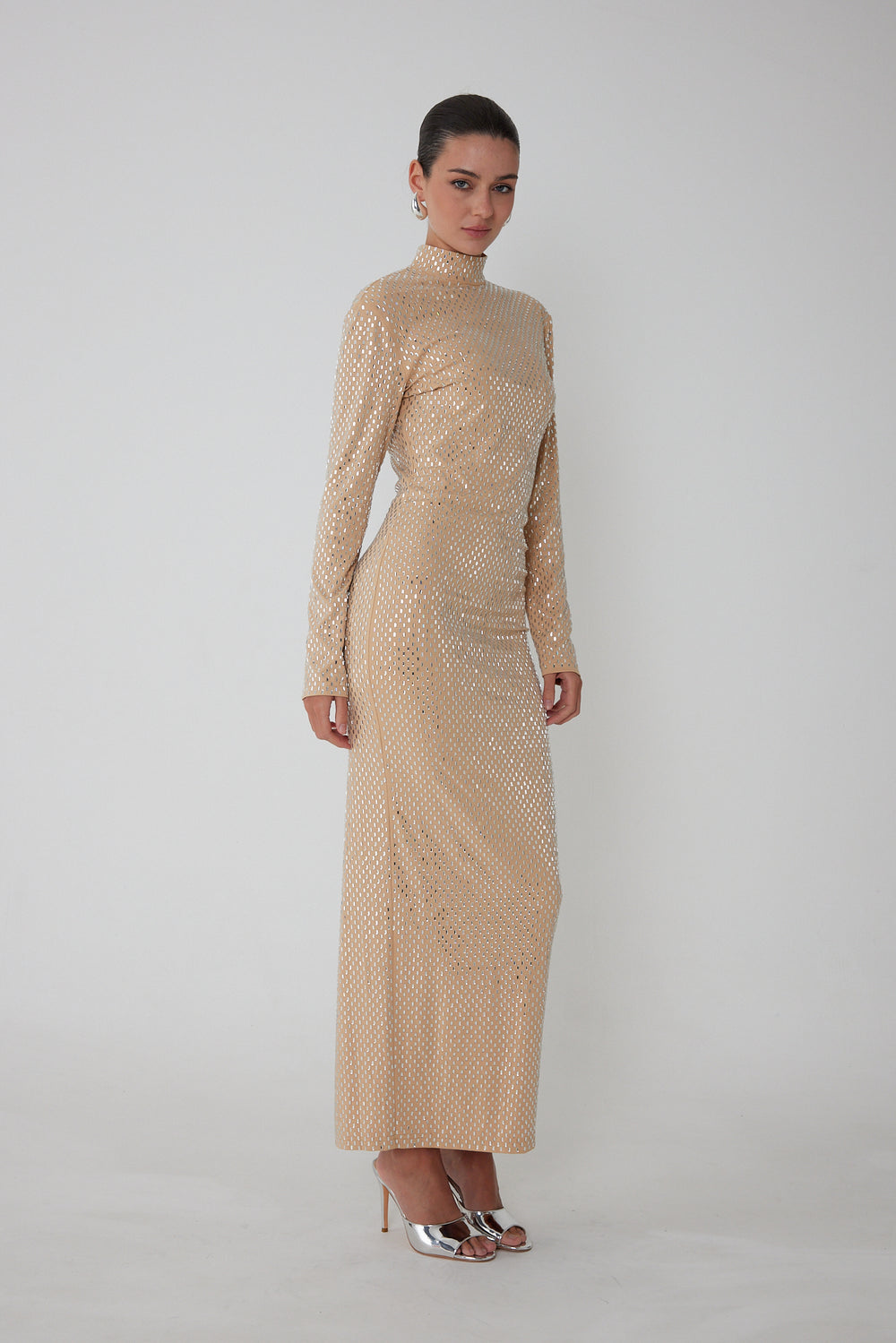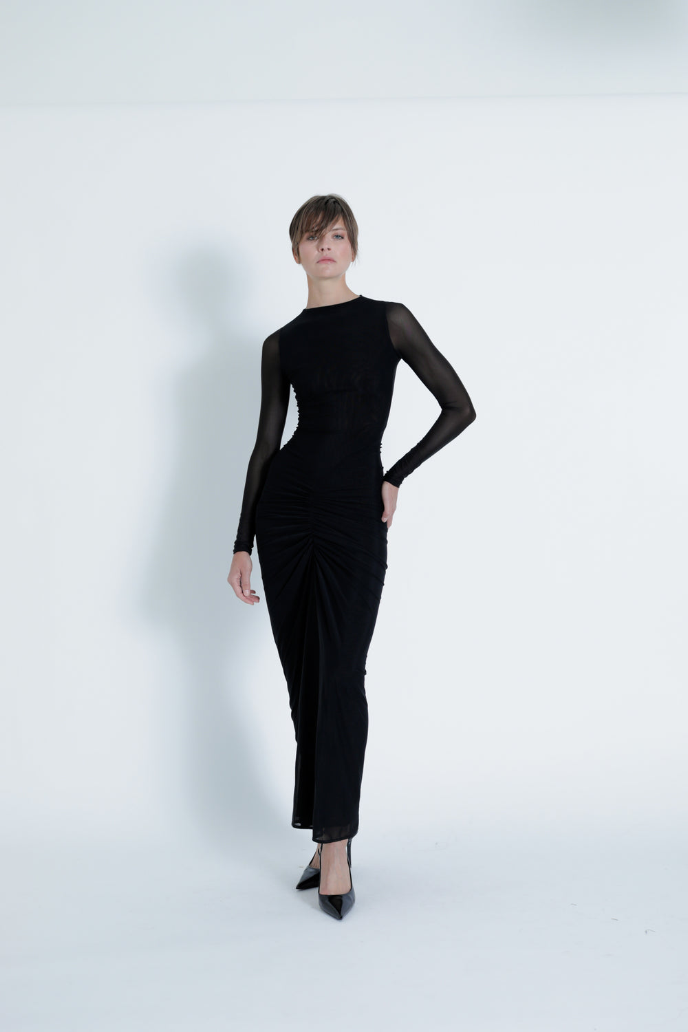 Ariana Mesh Solid Maxi Dress