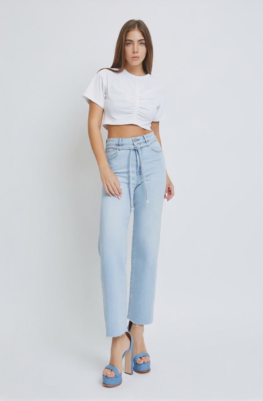 Looking to spice up your wardrobe? Look no further than our Tracey High Rise Wide Straight jeans! With a convenient 27" inseam and a flattering high rise waist, these jeans are perfect for any occasion. Whether you're running errands or hitting the town, upgrade your denim game today!