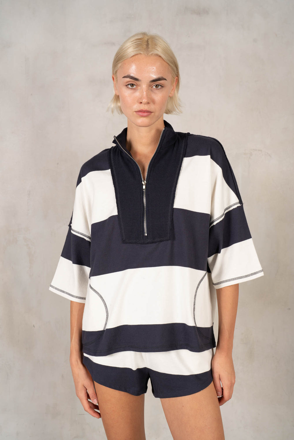 Matching Rib Semi Cropped Sweatshirt with Wide Oversized Sweatpants