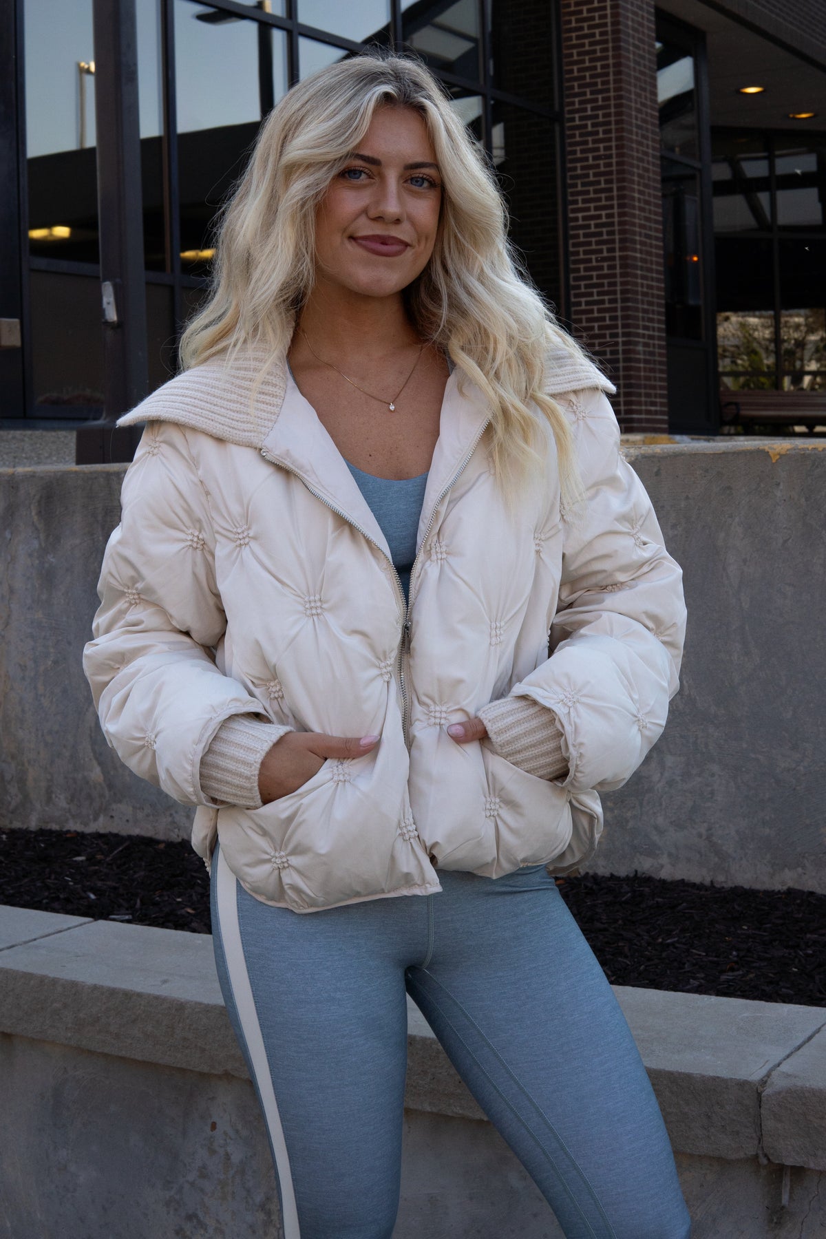 Elevate your wardrobe with the enchanting allure of the Charlie Jacket in a sumptuous Cream hue. This exquisite piece is a celebration of effortless elegance, designed for the fashion-forward woman who craves both style and comfort. Crafted from the finest materials, the Charlie Jacket envelops you in a cocoon of luxury, making every moment feel special. Its tailored silhouette flatters your figure, while the delicate cream shade adds a touch of sophistication to any ensemble. Whether you’re dashing to brunch or strolling through the city, the Charlie Jacket promises to be your go-to companion, radiating confidence and charm with every wear.