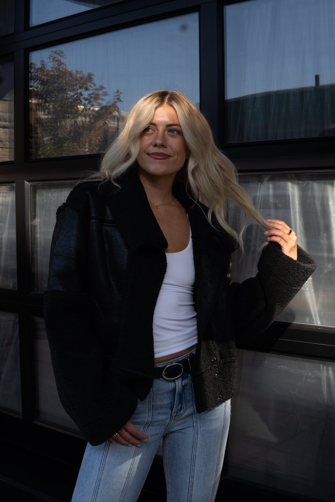 Trisha Bonded Distressed Suede Sherpa Jacket
