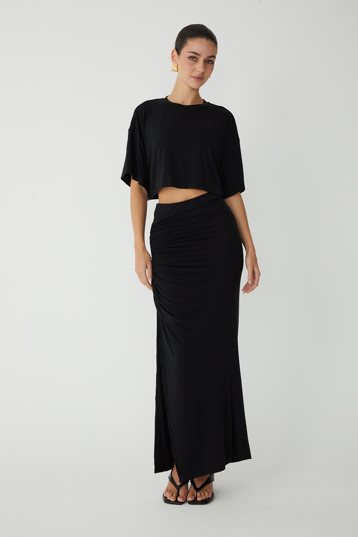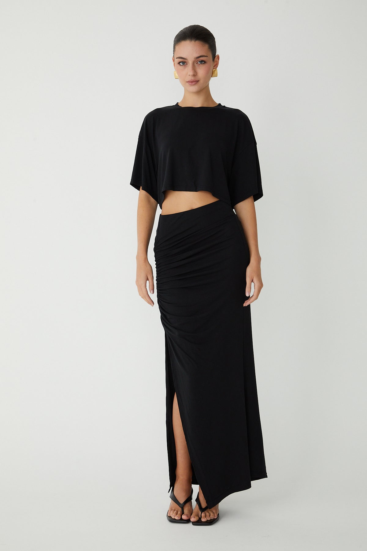 The sleek lines and exquisite detailing invite admiration, making you the center of attention at any occasion. Whether you're stepping into a chic soirée or a casual brunch, the Gemma Set empowers you with a sense of confidence and allure. Embrace the versatility and luxury of this stunning outfit, and let the world see the fashionista in you shine bright against the backdrop of classic black.