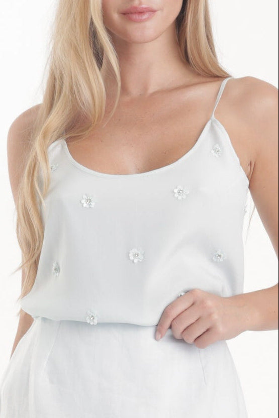 Meet the Margarita Cami. Designed in a lightweight, airy fabric, it features delicate straps and subtle floral detailing throughout. Soft and feminine, it’s an easy piece to wear on its own or paired with the matching skort.